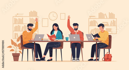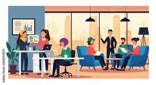 Mladá žena kupuje kávu v kavárně, plochá vektorová ilustrace. Denní ranní rutina, každodenní život, každodenní návyky.
