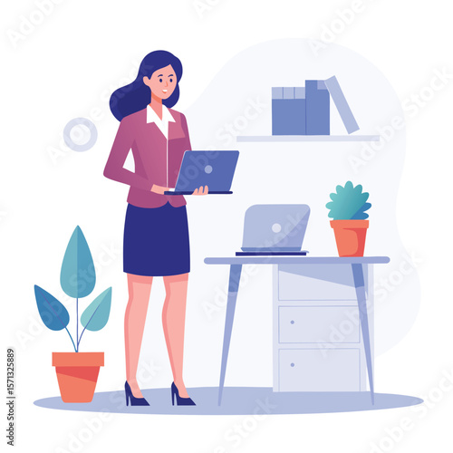 Mladá žena, služebná, Hospodyně, pracovník úklidové společnosti, myčka nádobí, žena v domácnosti mytí nádobí v kuchyni, ploché vektorové ilustrace. Úklid, domácí úklid a mytí nádobí.