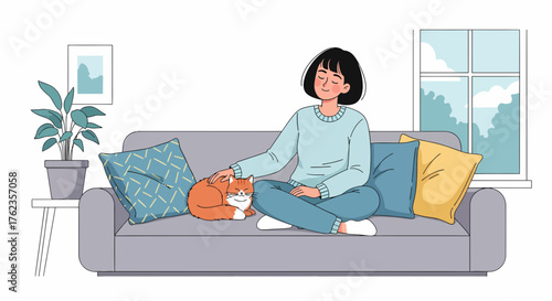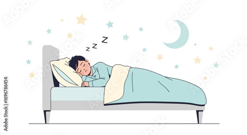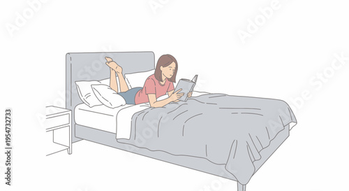 Mladá žena ležící na posteli s mobilním telefonem, ploché vektorové ilustrace. Usmívající se dívka chatování s přáteli pomocí smartphonu, surfování na internetu, kontrola telefonu. Interiér ložnice.