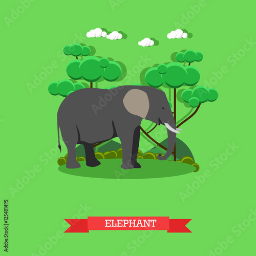 Zoo koncept banner. Divoká zvěř slon zvíře. Vektorová ilustrace v designu plochého stylu.