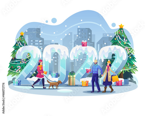 Vstupní brána do Zoo, žirafa v kleci a návštěvníci šťastný pár a matka se synem, vektorové ilustrace. Složení Zoo parku pro webový banner, webovou stránku atd.