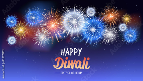Happy Diwali vector illustration. Festive Diwali and Deepawali card. The Indian festival of lights on color background