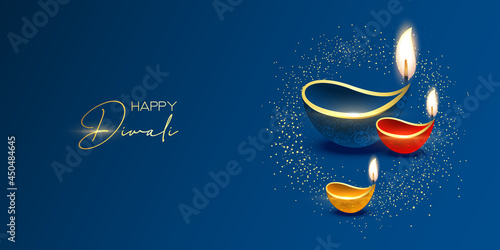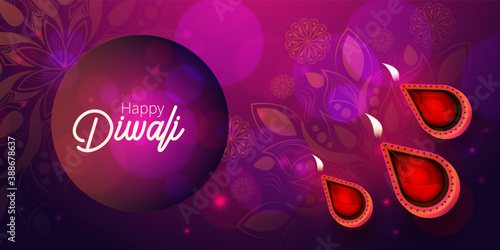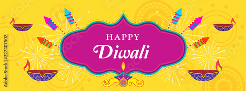 Happy Diwali - festival of lights colorful banner template design with decorative diya lamp. vector illustration.