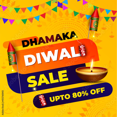 dhamaka diwali sale banner vector illustration. diwali festival sale banner background design with yellow background