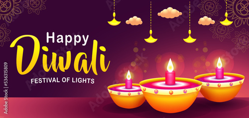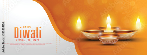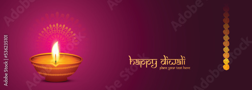 Happy Diwali - festival of lights colorful banner template design with decorative diya lamp.
