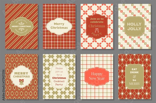 Christmas Poster set. Vector illustration of Christmas Background with branches of christmas tree and golden elements.