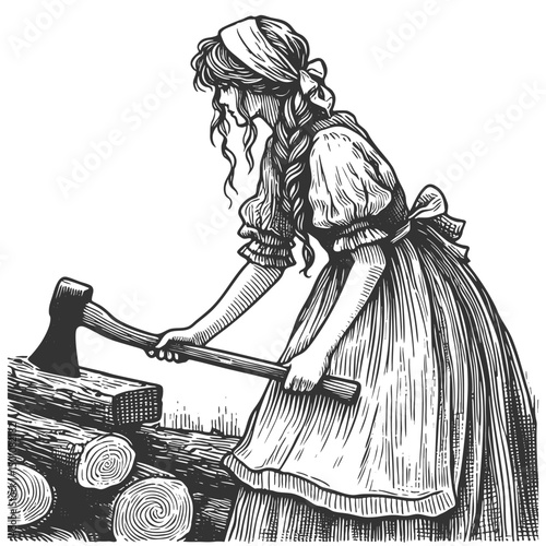 pin-up woman, smiling and dressed in a tied blouse and skirt, evoking 1950s style sketch engraving generative ai fictional character vector illustration. Scratch board imitation. Black and white image