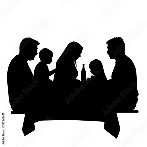 Family and friends dining icons: celebrating togetherness with simple silhouettes