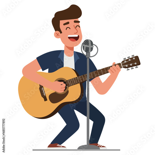 Isometric man playing guitar on park. Male street musician. Music instrument. Solo guitarist. Male street musician.