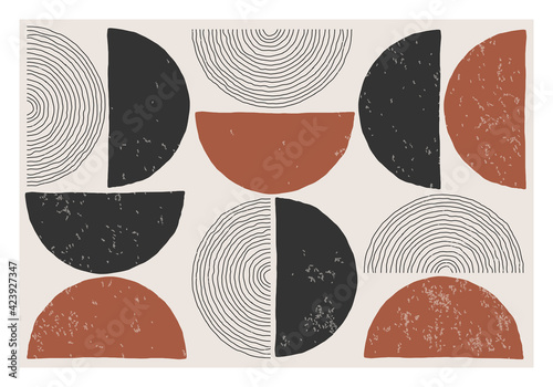 Abstract contemporary aesthetic background with landscape, desert, mountain, Moon. Earth tones, burnt orange, terracotta colors. Boho wall decor. Mid century modern minimalist art print. Organic shape