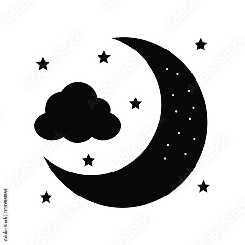 Dark crescent moon silhouette against a clean white background simple graphic design