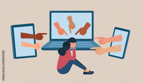 Bad review on computer laptop screen. Negative customer feedback. Vector illusration