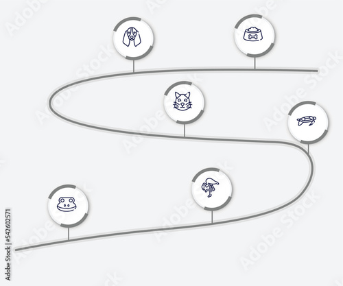 infographic element template with free animals outline icons such as elephant alone, bas hound dog head, dog with long ears, poisonous spider, flamingo with leg up vector.