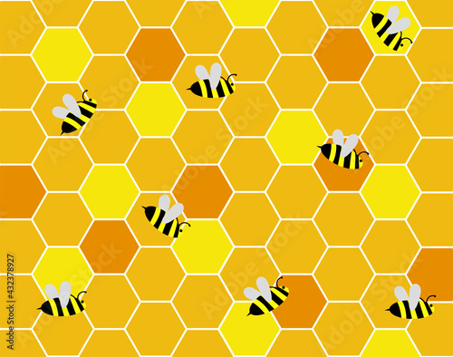Beautiful pattern bee honeycomb yellow, great design for any purposes. Vector illustration. Geometric texture background. Fabric element.