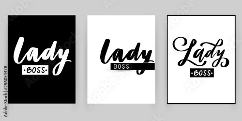 Lady Boss Vector posters. Feminism slogan with Handwritting lettering.