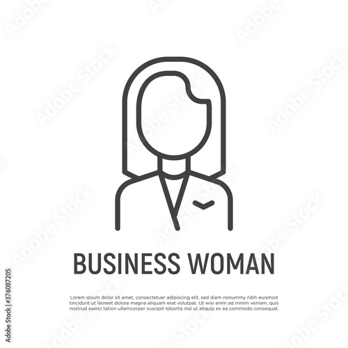 Businesswoman avatar thin line icon. Silhoette of woman in suit. Vector illustration.