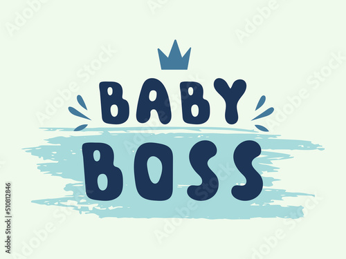 Baby Boss - Scandinavian style illustration text for clothes. Inspirational quote baby shower card, invitation, banner. Kids calligraphy background, lettering typography poster.