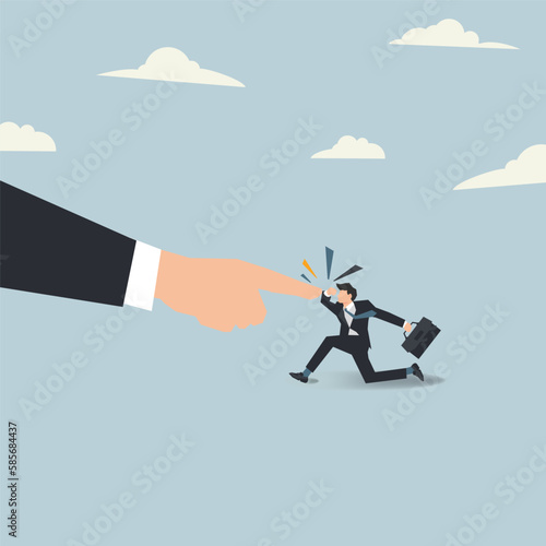 Pointing hand versus businessman. The employee conflict against the boss or owner concept vector illustration