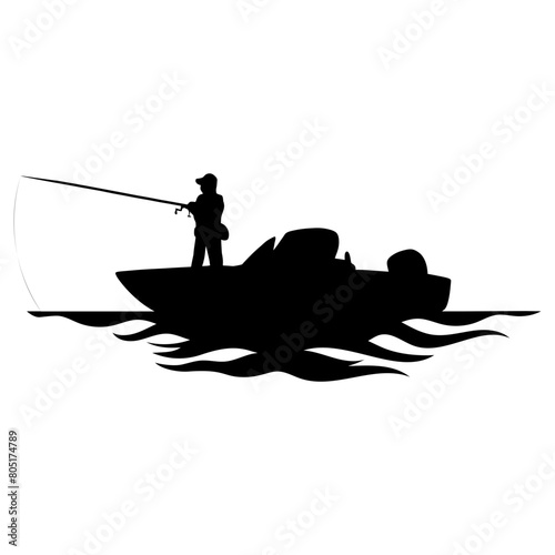 Fisherman Catching Fish in a Boat Silhouette Vector Illustration Icon