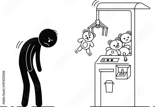Prize claw machine illustration in hand drawn style