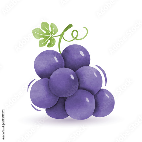 A vibrant illustration showcasing a cluster of green grapes with a single leaf, isolated on white.