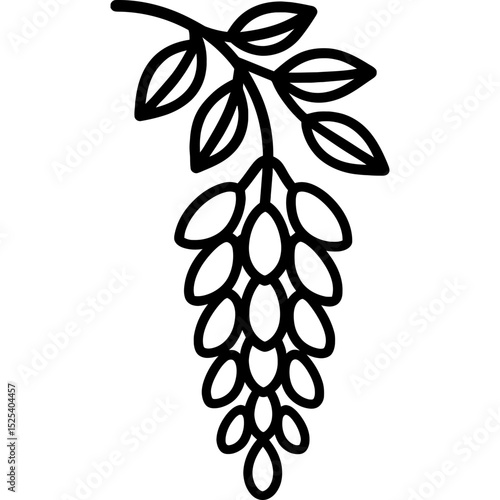 Elegant stylized grape cluster line art sketch featuring a single fruit bunch in black ink isolated on white background