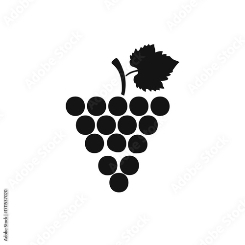 icon of a bunch of purple grapes with leaves in a minimalistic style on a light background, copy space