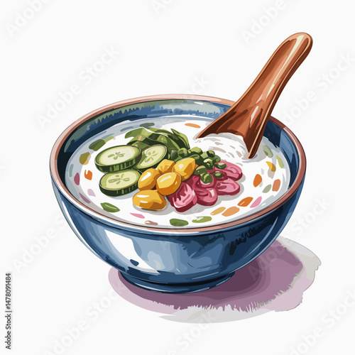 congee breakfast food in watercolor illustration style, isolated vector on transparent background