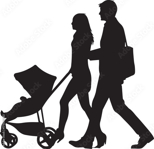 Set of stick people in different poses isolated on white background. Different types of families. Simple design stick figures. Black and white Icon or logo. Flat style vector illustration.