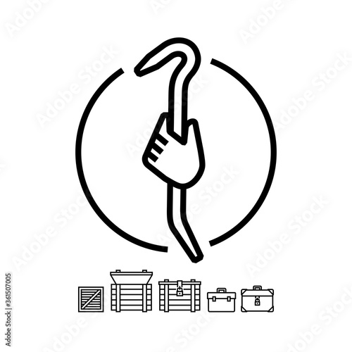 Multipurpose crowbar vector icon in outline, glyph, filled outline style. Three icon style variants in one pack.