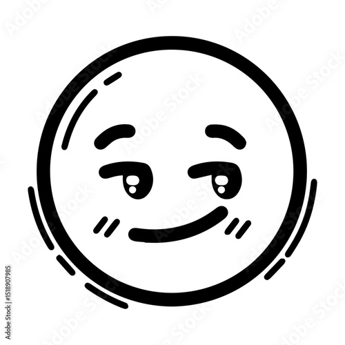 Black Circle Evil Smile Vector - Style emoji icon with sharp white eyes and upturned mouth, perfect for conveying cunning or a hint of evil in digital interactions, games, or weird themed content.