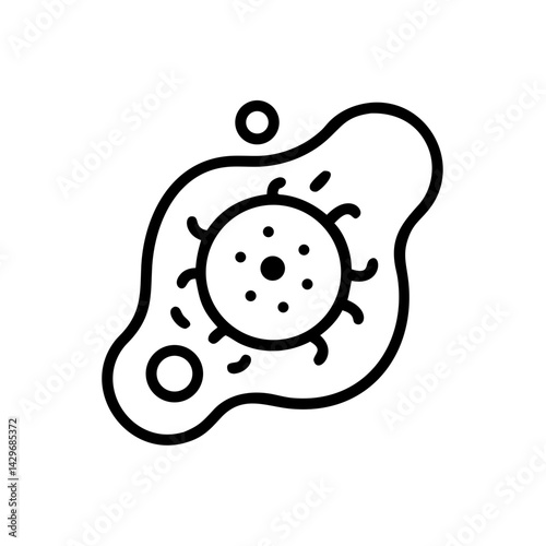 Amoeba protozoa microorganism, vector contour hand drawn illustration isolated on white