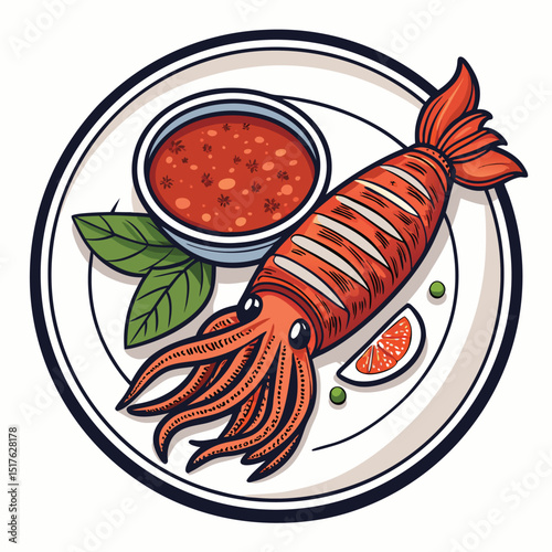 Delicious gyoza with dipping sauce in hand-drawn sketch style