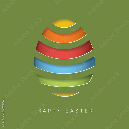 Colorful colourful vector happy easter day in paper style with egg and flower. Vector paper style easter background