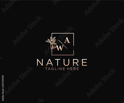 initial EA letters floral frames. Botanical feminine editable premade monoline unique decoration for greeting card, wedding invitation.
