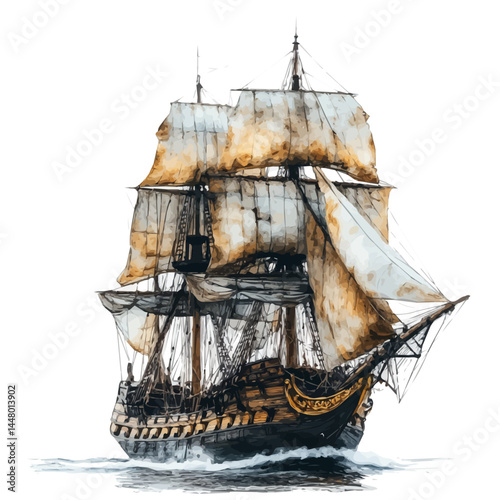 Historic sailing ship illustration on a calm sea