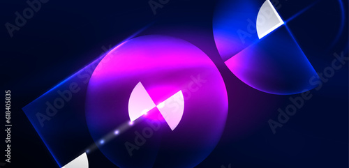 Abstract background shiny glowing neon color round elements and circles. Techno futuristic vector Illustration For Wallpaper, Banner, Background, Card, Book Illustration, landing page