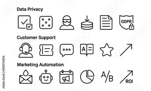 Data privacy and security icons for digital protection, GDPR, and cyber threats