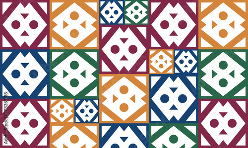 Colorful geometric shape mosaic illustration. Trendy scandinavian style seamless pattern, fun shapes, creative geometry concept design.