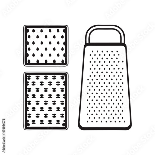 Isometric Line Art Kitchen Graters and Zesters for Cooking, Baking, and Food Preparation. Culinary Tools for Recipe Websites, Blogs, and Kitchenware Design.