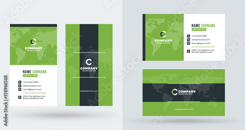 Creative Business card template. Visiting card with company logo. Vector illustration, modern business card design. double sided business cards. flat green business card design.