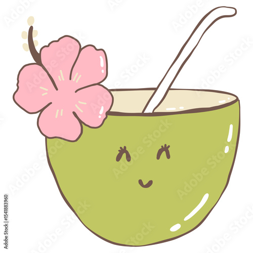 Exotic coconut halves illustration, evoking tropical paradise vacations and healthy eating, originally a scalable vector graphic, fresh, vibrant design.