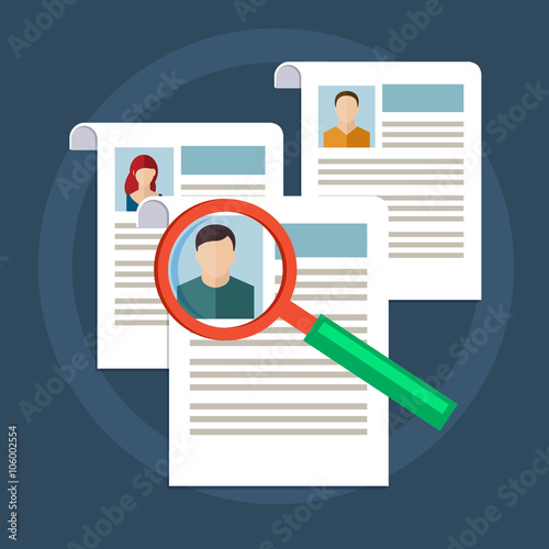 Woman using laptop to sorting some people profile. HR and headhunter service abstract concept. Human resources, candidates, performance management, find employee, job applicant, HR management.