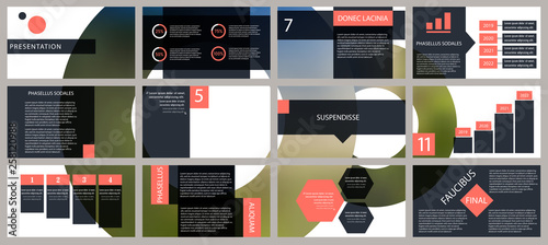 Business presentation slides templates from infographic elements. Can be used for presentation, flyer and leaflet, brochure, corporate report, marketing, advertising, annual report, banner, booklet.