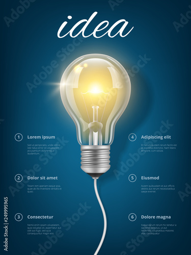 LED bulbs turn on dark background with object reflection. Energy saving lighting product advertisement template. Realistic EPS file.