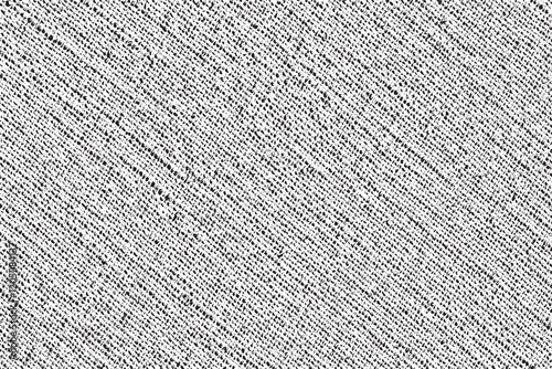 Distressed fabric texture. Vector texture of weaving fabric. Grunge background. Abstract halftone vector illustration. Overlay for interesting effect and depth. Black isolated on white background.