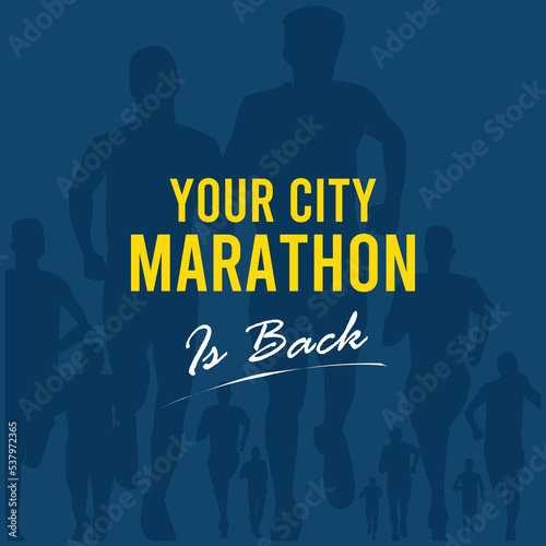 Vector runner marathon design template for posters/ads/flyers/blog. Vector illustration of a running man. Typographic running poster template with runner.