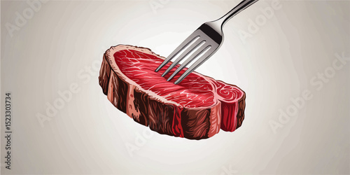 A close-up shot of a juicy marinated steak on a wooden cutting board - Vector Illustration