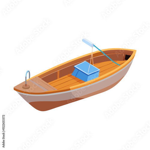 Flat vector illustration of a blue rowboat with oars resting on stylized waves. Simple nautical graphic for maritime clubs, watersport logos, travel themes, or recreation and adventure branding.
