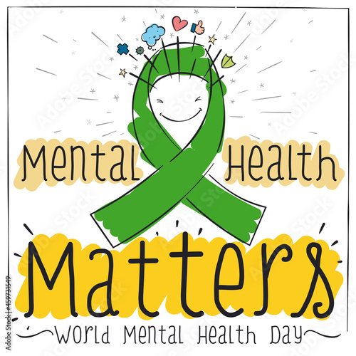 Green Ribbon with Ideas to Celebrate World Mental Health Day, Vector Illustration